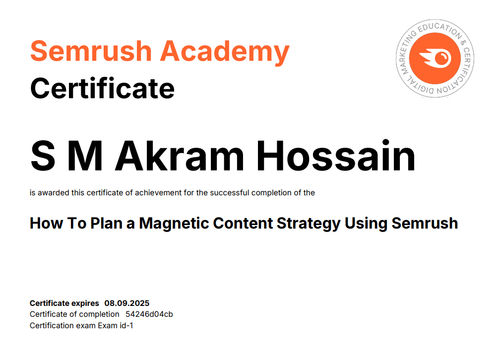 Content Strategy Course Certificate by Semrush