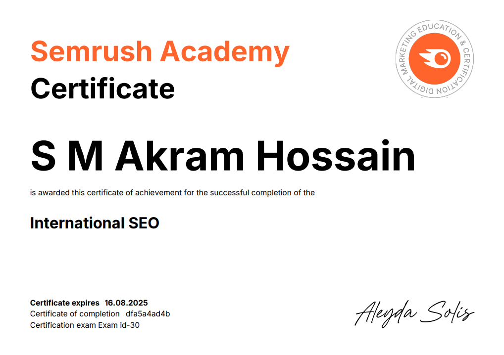 International SEO Course Certificate By Semrush