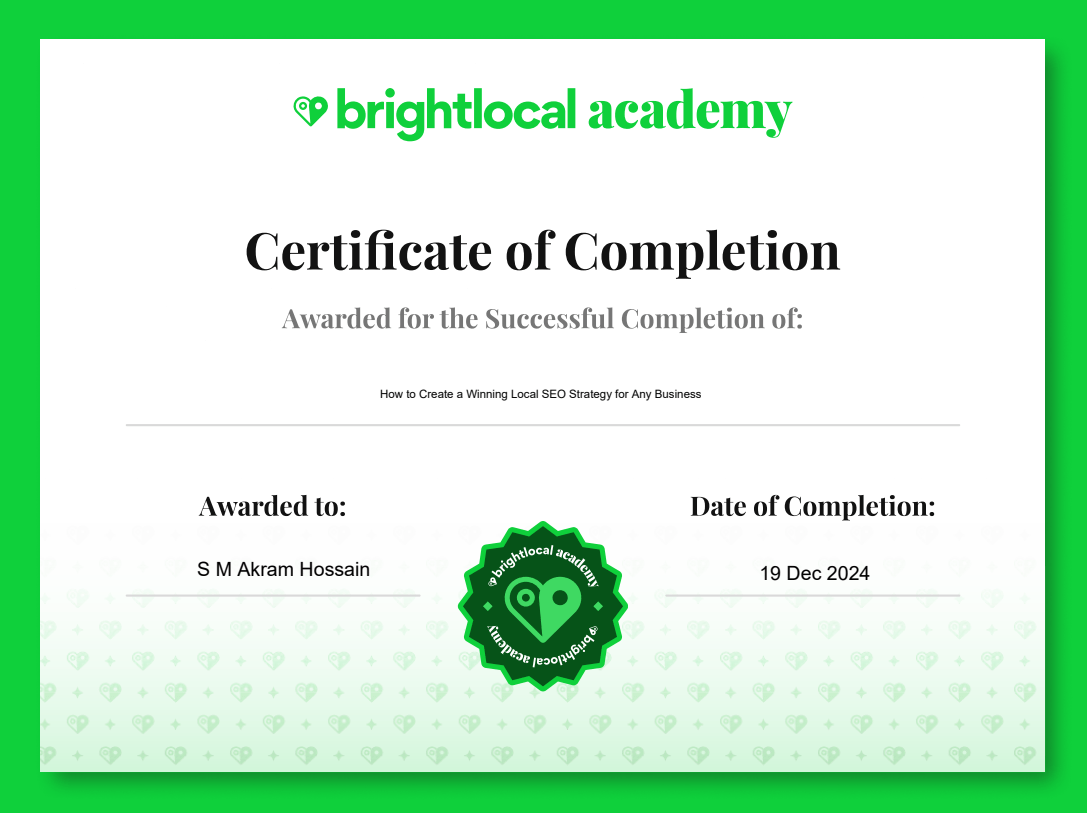 Local SEO Strategy Certificate by Bright Local Accademy