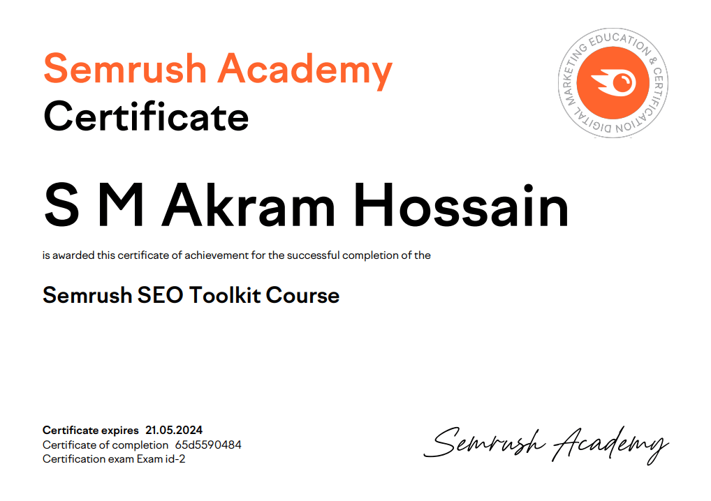 Semrush SEO Toolkit Course Certificate by Semrush